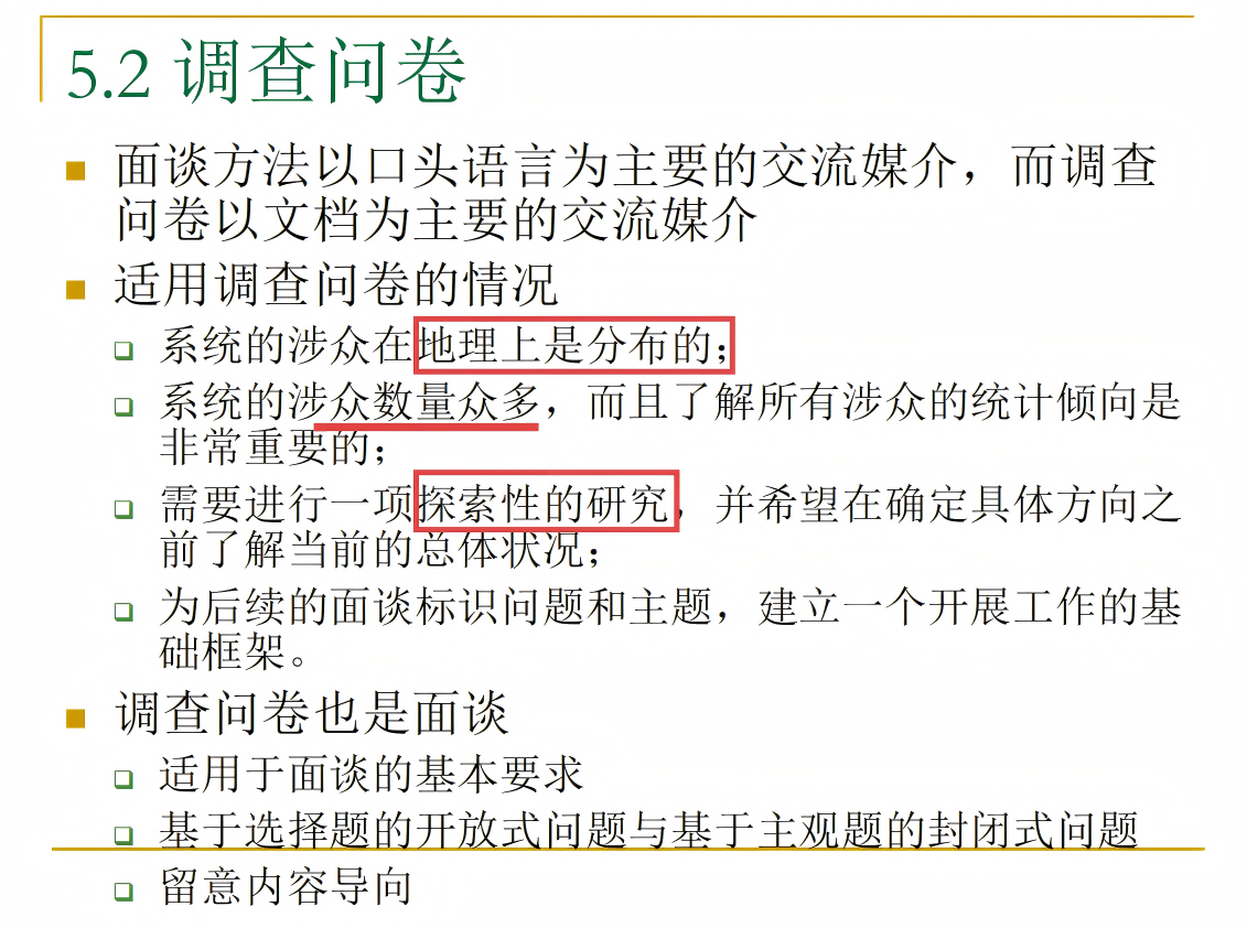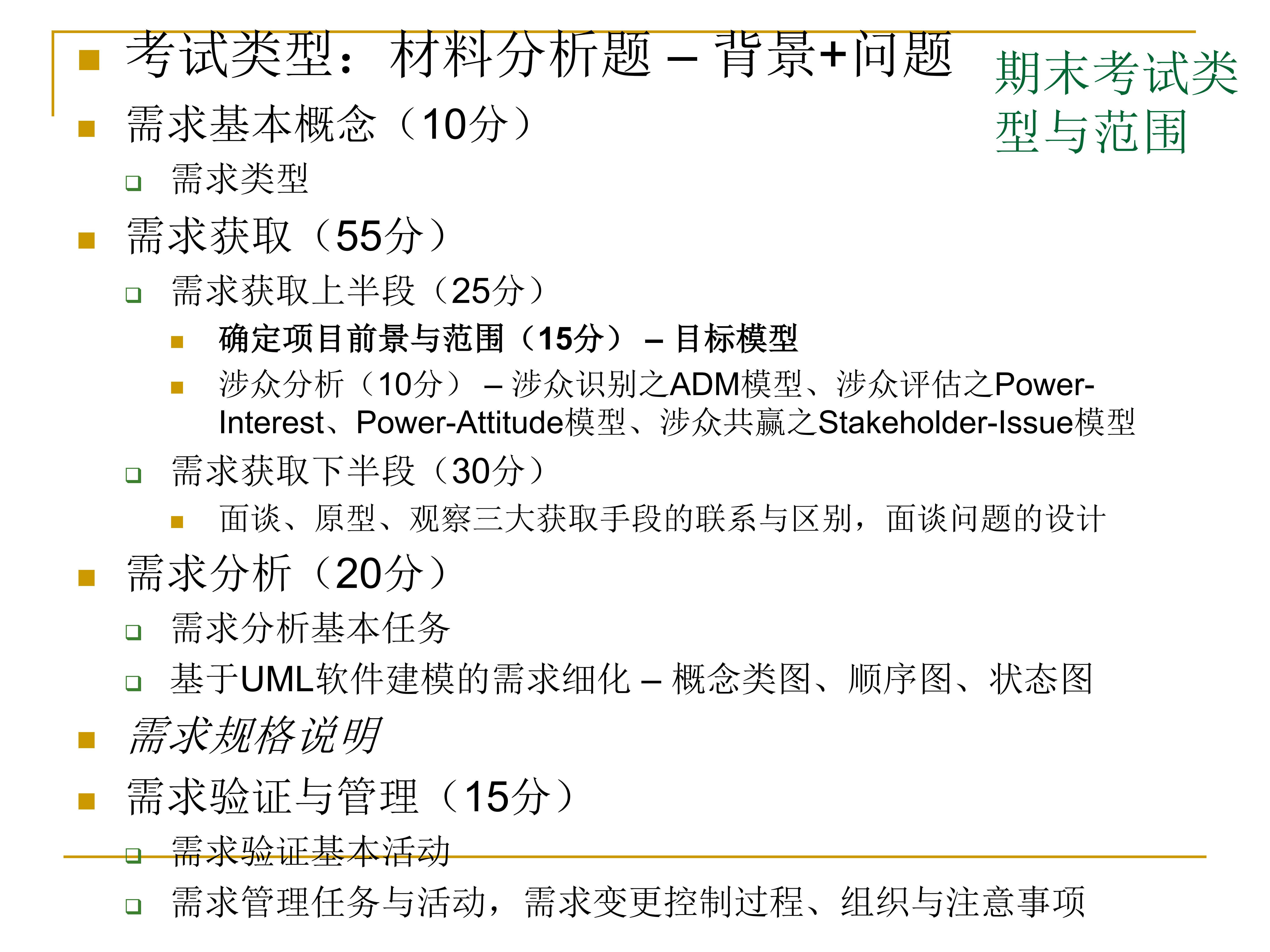 考试形式:直接考概念;给定材料,写出各种需求类型实例;