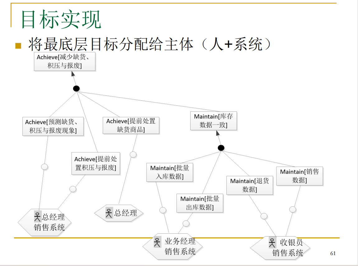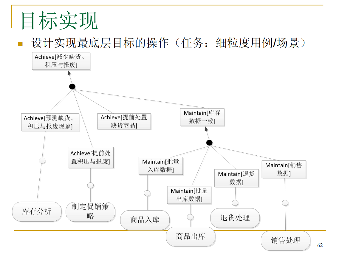 一个高层次目标G可以精化为低层次目标,精化结束的标志是子目标仅含单一事务: