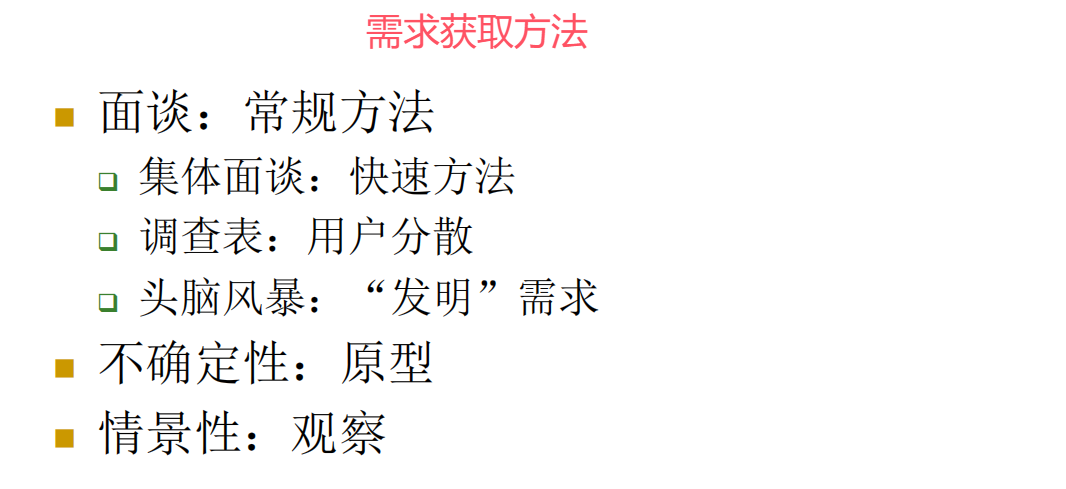 概念:需求获取是从人、资料或者环境当中获取需求的过程。
