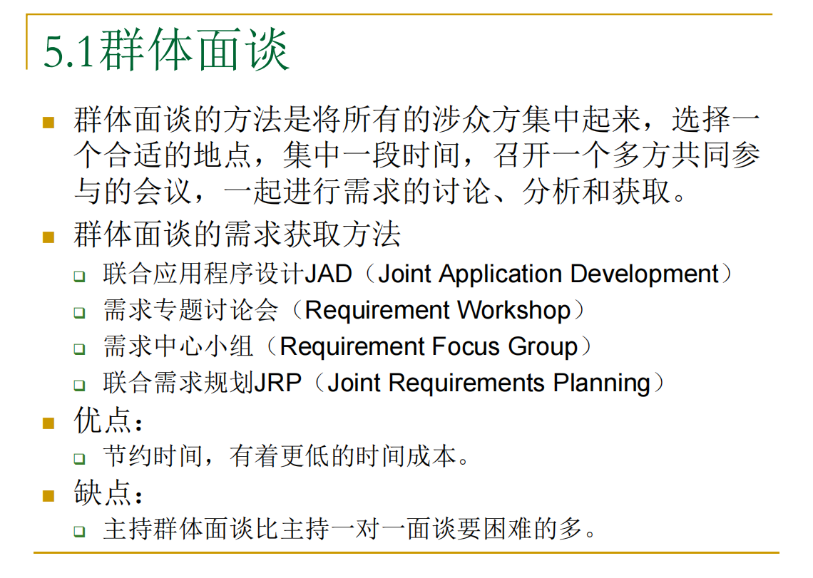 - 面谈为原型提供输入: 通过面谈获取初步目标后,需求人员将其转化为原型。如果没有面谈作为基础,盲目做出的原型往往偏离业务重心。