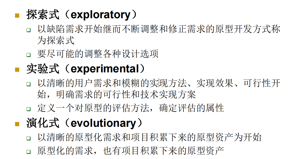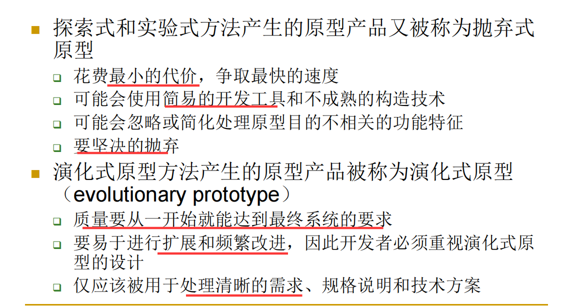 - 用户可能会被原型所表现出来的非功能特性遮蔽了眼睛,从而忽略了他们更应该重视的功能特性