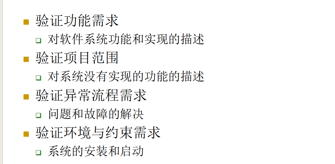 需求验证是专指在需求规格说明完成之后,对需求规格说明文档进行的验证活动用来确保: