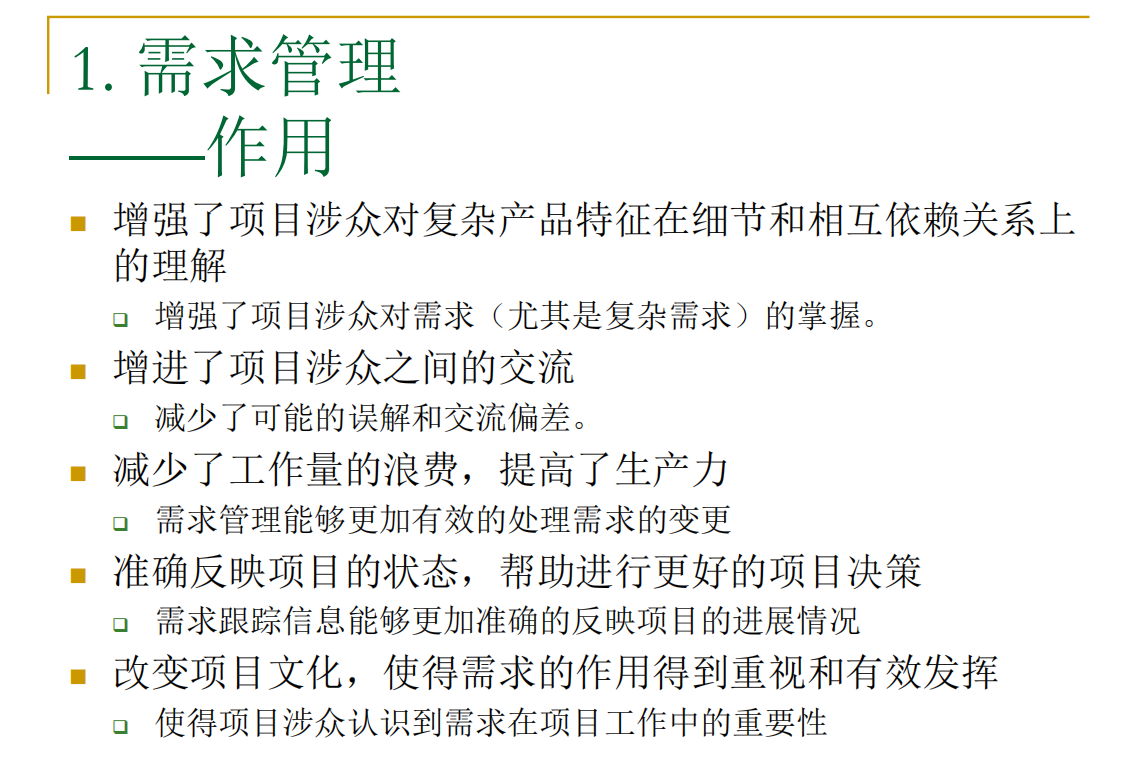 在需求开发之后的产品生命周期当中保证需求作用的有效发挥