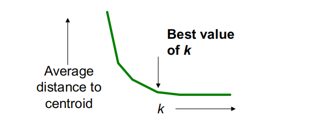 不同的k值,观察随着k增加,到质心的平均距离的变化情况。平均值在达到正确的k之前迅速下降,之后变化不大。