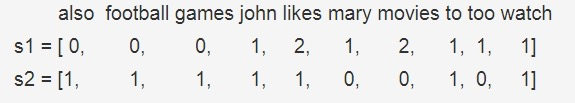 - 统计词典中每个词在句子中出现的次数,如𝑠1中movies次数为2;